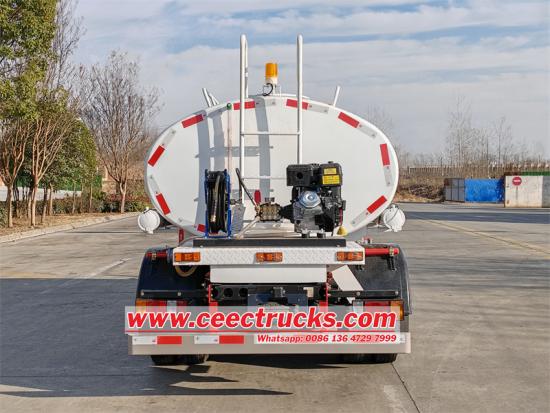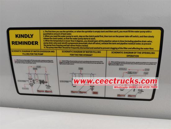 За операције прскања, камион је опремљен елиптичним угљеничним резервоаром за воду капацитета до 5000Л. Овај дизајн не само да повећава капацитет складиштења воде, већ и чини структуру резервоара компактнијом, олакшавајући агилно маневрисање камиона у уским градским улицама. Поред тога, уградња пумпе за воду 65КЗФ-40/50 обезбеђује камиону са прскалицама јак притисак воде и стабилан проток, обезбеђујући ефикасност и уједначеност операције прскања.