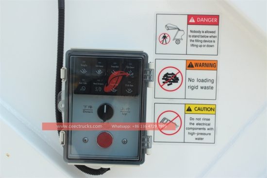 ** Задњи аларм и камера могу бити опремљени. ** Италија мулти-вентил се може изабрати. ** 240Л (једнострука или дупла канта) или стандардне канте од 660 Л, 1100 Л са подизачем канте могу се изабрати. |