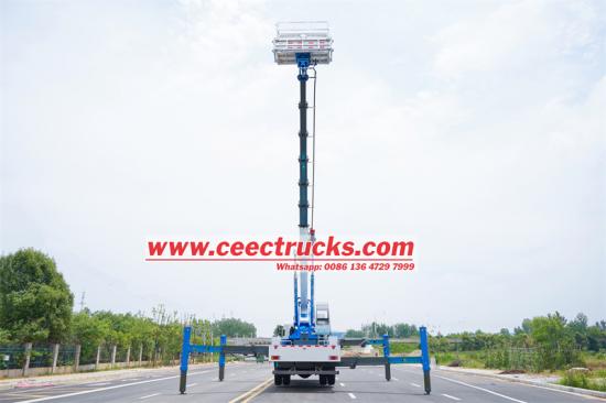 Његов јединствени дизајн хидрауличног носача Х-типа има размак хоризонталног и вертикалног ширења од 8.600 мм и опремљен је двосмерним хидрауличним механизмом за закључавање како би се осигурала стабилност током рада. Камион је такође опремљен са двоструким оперативним системом ручног и бежичног даљинског управљања, оптерећењем платформе од 200 кг, хидрауличном ротацијом од 360° и уграђеним вишеструким сигурносним заштитним уређајима, као што су аутоматско ограничење ван граница, уређај за заустављање у нужди и заштита од цурења.