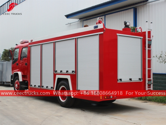 Ватрогасна цистерна ИСУЗУ 6ЦБМ, користи ИСУЗУ ФТР Лефт Ханд Дриве модел 4к2 шасију, 6-степени мануелни мењач, ИСУЗУ 190ХП дизел мотор, капацитет цистерне за воду 6.000Л, фарбање и логотипи зависе од захтева.