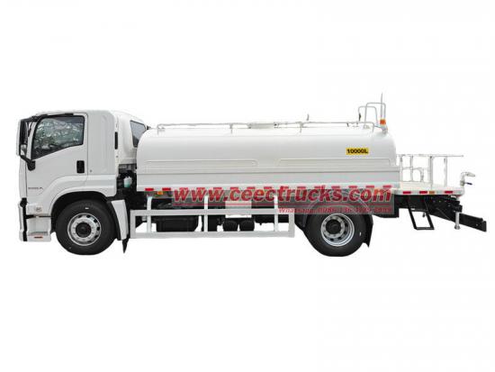 Камион за превоз питке воде Исузу ФТР је модификован на шасији Исузу ФТР ГИГА, мотор 4ХК1-ТЦ60, линијски четвороцилиндрични, максимална снага 151 кВ (205 КС), Исузу МЛД 6-брзински мењач, горњи део је резервоар за воду од угљеничног челика запремине 10 кубних метара, конфигурисан је са предњим испирањем, задњим прскалицом и бочним прскалицом, самоусисавајућом специјалном воденом пумпом која може да пумпа и испушта воду, са спојницом за гашење пожара, гравитационим вентилом, радном платформом на задњем делу резервоара и инсталираним топом за прскање зеленила. Топ се може ротирати и подешавати количину воде (прскање у облику стуба, магле, ситне кише).