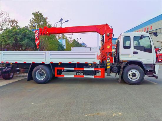 Мобилна дизалица Isuzu FTR има равну структуру крака са дометом од 14-18 метара, покривајући шири радни опсег, погодан за монтажу на великим висинама (као што су улична расвета, билборди) или подизање на велике удаљености. Електрохидраулични пропорционални вентил + систем за детекцију оптерећења омогућава микроманипулацију издужења и подизања крака, погодан за прецизно подизање. Максимални капацитет подизања од 5 тона (кратки домет) и капацитет подизања на средње и велике удаљености су градирани и прилагођени. На пример, и даље може да одржи капацитет подизања од 2-3 тоне у радијусу од 10 метара и може флексибилно да одговори на различите потребе.