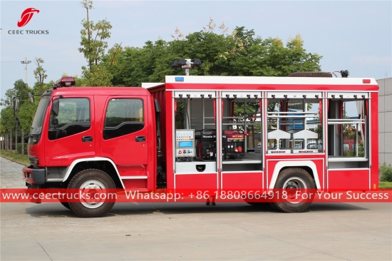 ИСУЗУ расвјетно ватрогасно возило, користи ИСУЗУ ФВР Лефт Ханд Дриве модел 4к2 шасије, 6-степени мануелни мјењач, ИСУЗУ 240ХП дизел мотор,опремљен системом осветљења, сликање и логотипи зависе од захтева.
