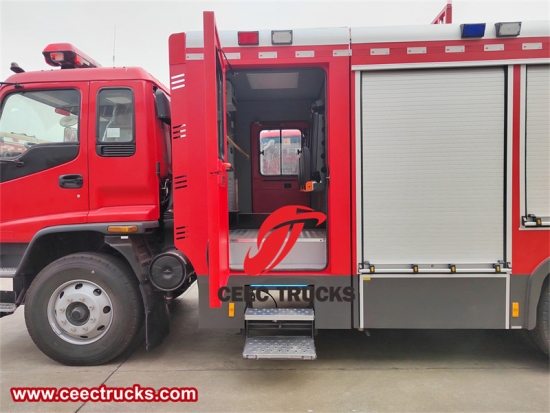 Изграђен на чврстој Исузу ФВР платформи, познатој по својој издржљивости и поузданости, ово ватрогасно возило одише осећајем снаге и спремности од тренутка када крене у акцију. Шасија ФВР, позната по својој робусној конструкцији и одличној управљивости, осигурава да камион може да се креће кроз уске градске улице, као и да са лакоћом прелази преко неравног терена, што га чини идеалним избором за различита окружења за гашење пожара.