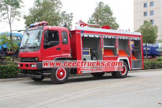 2000L dry powderОво је ватрогасно возило са сувим прахом изграђено на бази ИСУЗУ ФВР Шасија. Опремљен је моћним ИСУЗУ 4ХК1-ТЦГ61 мотора са запремином од 7.99Л и излазном снагом од 240 коњских снага. Усваја 4Кс2 режим вожње и опремљен је са Фаст 8-брзи мењач. Максимална брзина може да достигне 90км/х, што се може прилагодити различитим сложеним условима на путу. У погледу система за гашење пожара, камион је опремљен са два резервоара за суви прах од угљеничног челика од 2000 литара и 12 80-литарских боца азота са пројектованим притиском од 15 МПа.