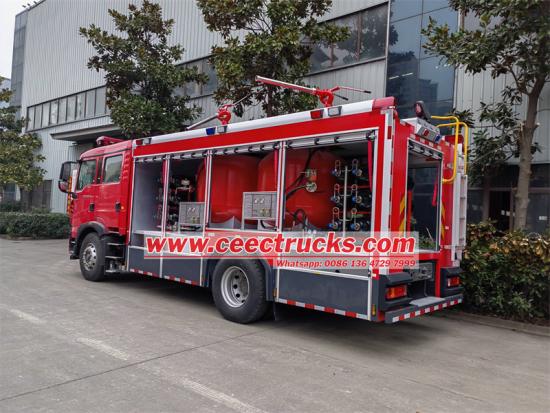 Ватрогасну пумпу покреће ПТО, са опсегом притиска од 1,6-2,5 МПа и протоком од 80-120 кг/с. Ватрени топ има брзину прскања од 60-100 кг/с и домет од 40-60 метара, што може ефикасно да се носи са различитим пожарним ситуацијама. Камион за азот са сувим прахом је такође опремљен пуним сетом стандардне опреме за гашење пожара и спасавања, као што су лопате, полуге, секире и опрема за сечење итд.