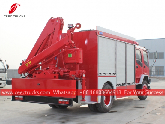 ИСУЗУ ватрогасно возило за хитне случајеве, користећи ИСУЗУ ФВР Лефт Ханд Дриве модел 4к2 шасију, 6-степени мануелни мењач, ИСУЗУ 240ХП дизел мотор,опремљен системом осветљења и дизалицом, сликање и логотипи зависе од захтева.