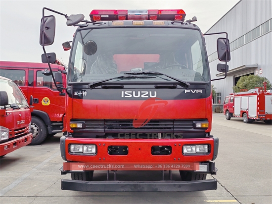 Јапански бренд ИСУЗУ ФВР 6000 литара ватрогасни резервоар за воду, ИСУЗУ нови модел ФВР Лефт Ханд Дриве 4к2 шасија, 8-степени мануелни мењач, ИСУЗУ 240ХП дизел мотор, опремљен са познатом кинеском ватрогасном пумпом и монитором пожара, фарбање и логотипи зависе од захтева.