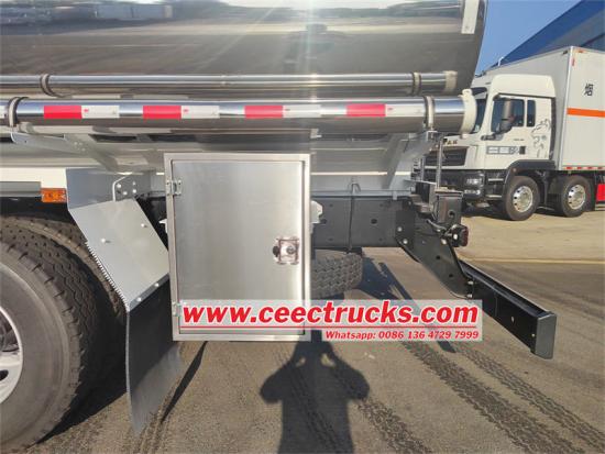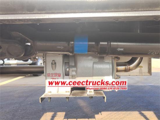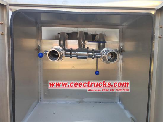 Резервоар је основна компонентаКамион са пијаћом водом ИСУЗУ ГИГА, а његов дизајн директно утиче на квалитет воде и ефикасност транспорта. Са капацитетом од 20000Л, резервоар је направљен од 304-2Б материјала од нерђајућег челика за храну, дебљине 4мм. Овај материјал не само да показује одличну отпорност на корозију, већ и ефикасно спречава контаминацију воде током транспорта. У резервоару су уграђене преграде које значајно смањују турбуленцију воде током транспорта, чувајући стабилност квалитета воде. Горњи део резервоара је опремљен са два поклопца шахта од нерђајућег челика (ДН500), што олакшава рутинско одржавање и чишћење како би се обезбедила унутрашња хигијена резервоара. Поред тога, резервоар је опремљен мерачем нивоа воде, омогућавајући возачу да прати количину воде у било ком тренутку, избегавајући недовољно или преоптерећење. Вентил за слободно пражњење има дизајн кугличног вентила, који је једноставан за руковање и побољшава ефикасност одводње.