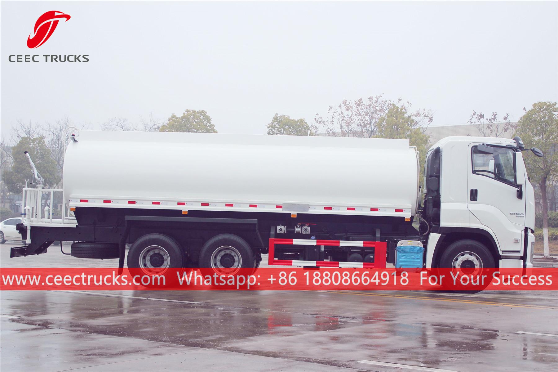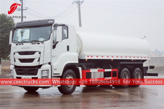 Камион за воду ИСУЗУ 20.000Л, шасија са левим воланом ИСУЗУ ГИГА, мануелни мењач ЗФ са 16 брзина, дизел мотор ИСУЗУ 380ХП, водена пумпа познатог бренда, са предњом, средњом и задњом млазницом за прскање по избору. Све слике и логотипи зависе од захтева.