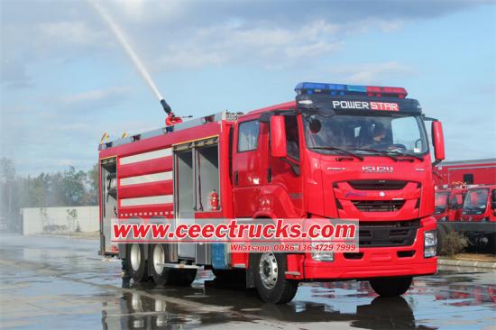 Овај камион за ватрогасну воду ИСУЗУ ГИГА је дизајниран за стварну борбу. Дворедна кабина може да прими 5 особа, а задњи ред је опремљен и носачем апарата за дисање за ваздух за припрему ватрогасаца за излазак на пожариште. ПЛЦ-контролисани систем за гашење пожара пружа флексибилне и разноврсне опције рада. Даљински контролисани ватрени топ на крову може да се ротира за 360 степени, чинећи гашење пожара флексибилнијим и ефикаснијим. ЛЕД систем осветљења и светла упозорења обезбеђују сигурност ноћног рада. Генерално, ово ватрогасно возило ИСУЗУ ГИГА представља највиши ниво савремених ватрогасних возила.