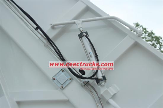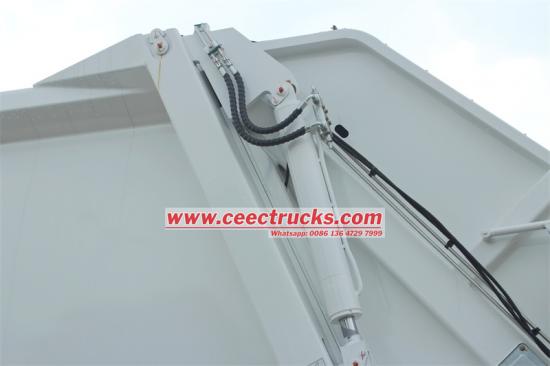 ——Одељак за смеће:Одељак је направљен од материјала високе чврстоће, висококвалитетног угљеничног челика као што је манган челик К345, и формира се потпуно затвореним заваривањем. Запремина се креће од 4 кубна метра до 20 кубних метара. Дизајн одељка укључује лучну структуру, двосмерну компресијску потисну плочу, резервоар за отпадну воду (запремина ≥ 200Л) и уређај за заптивање против цурења како би се ефикасно спречило секундарно загађење.
