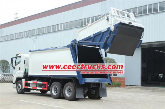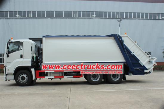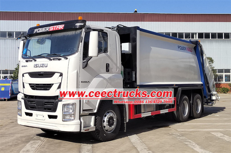 Камион за набијање отпада ИСУЗУ ГИГА опремљен је шестоцилиндричним дизел мотором од 279 кВ и ФАСТ мењачем са 12 брзина напред, који пружа моћне и ефикасне перформансе. Са телом компактора од 20 кубних метара и степеном компресије 3:1, камион има хидраулични механизам за подизање канте за брзо сакупљање смећа. Луксузна кабина је опремљена клима уређајем, ваздушним седиштима и другим комфорним карактеристикама. Контролни систем ЦАН магистрале и АБС систем против блокирања кочница обезбеђују сигурност. Погодан за различите урбане и руралне средине, камион може бити опционо опремљен са више механизама за подизање кашика, што га чини ефикасним решењем у области еколошке санитације.