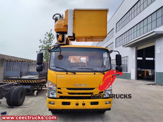 Овај Исузу изоловани ваздушни радовикамионје базиран на Исузу НПР шасији и усваја 4Кс2 режим вожње, који је управљив и флексибилан. Опремљен интегрисаним системом за подизање, максимална радна висина може да достигне 21,7 метара, радни радијус је 13 метара, а може да се ротира у опсегу од 90° и 95° лево и десно. Дизајн изолације је одличан, радна кашика има перформансе изолације од 20кВ/5мин, а унутрашња изолација може да достигне 50кВ/5мин. Телескопска рука је направљена од ФРП-а и челика, подржава ротацију до 360° и побољшава сигурност и оперативну флексибилност. Систем напајања је опремљен дизел мотором ИСУЗУ 4ХК1, који испуњава Еуро ВИ стандарде емисије, има излазну снагу од 190 коњских снага и може да превезе 3 путника у исто време, погодан за различите сложене сценарије рада у ваздуху.