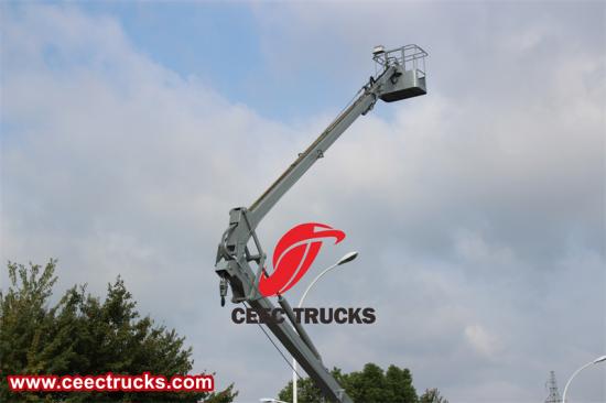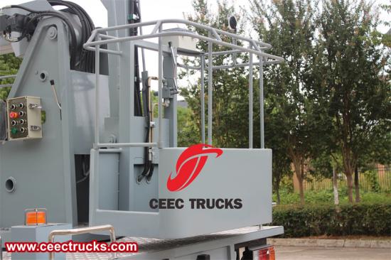 Камион са радном платформом има напредни хидраулички контролни систем који управља кретањем гране и кашике. Систем обезбеђује глатку и прецизну контролу, омогућавајући руковаоцу да прецизно и ефикасно позиционира кашику. Хидраулички систем је такође опремљен сигурносним функцијама као што су двосмерни балансни вентил или хидраулична брава како би се осигурала стабилност и сигурност платформе током рада. Оператер може лако да контролише подизање, увлачење, ротацију и друге радње гране и платформе преко контролне табле у кабини, побољшавајући радну ефикасност.