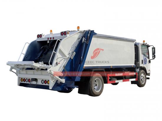 Rear tilting device for 240L and 1100L metal binsThe 6 CBM rear loader truck is built on the Isuzu light duty chassis, equipped with an Isuzu 4HK1 diesel engine with a maximum power of 190HP and a peak torque of 560Nm, matched with a 6-speed manual transmission MLD. It is powerful and stable, and can challenge all kinds of difficult roads. The garbage compactor bin is made of high-tensile steel, and key parts such as the floor (4mm) and side panels (3mm) are reinforced by laser/plasma cutting and automated welding processes to ensure the durability of the body. With its efficient compaction, strong power, modular design and strict manufacturing standards of the CEEC trucks factory, the Isuzu 6 CBM rear loader truck has become an ideal solution for urban garbage disposal around the world.