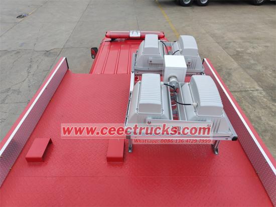 Front mounted with 4tons towing winchИсузу мини ватрогасно возило за хитне случајевеусваја ПТ1073БУХАИ тип ИИ камионске шасије. ТхеИсузу ватрогасна коламонтиран са дворедним седиштима кабином за посаду, која може да превезе 2+4 путника укључујући возача. ТхеИСУЗУ вишеструко функционално ватрогасно возило за спасавањеје удобан и згодан за вожњу. Која је опремљена оригиналним електричним витлом Америцан Цхампион, које може да вуче око 4 тоне робе. Користи јапански Хонда генератор СХТ11500 снаге 10КВ. Кров је такође опремљен системом за подизање осветљења ИЗХ4-5.0ЦФ, који се може подићи до 7,6 метара изнад земље. Одељак за опрему је конструкција од алуминијумске легуре, ау возилу може да стане не мање од 90 комада опреме за хитно спасавање. ТхеИсузу спасилачки ватрогасни камионима нови изглед, научни и разуман распоред, погодан рад и комплетан приказ инструмента; потпуно је опремљен прибором и алатима, и усваја ротирајуће и вучне структуре, компактан распоред и погодан приступ, што га чини ближим потребама стварног гашења пожара. Стога, овоИсузу мини ЕЛФ ватрогасно спасилачко возилоје идеално специјално ватрогасно возило за хитне ватрогасне снаге и разне професионалне ватрогасне и спасилачке екипе.