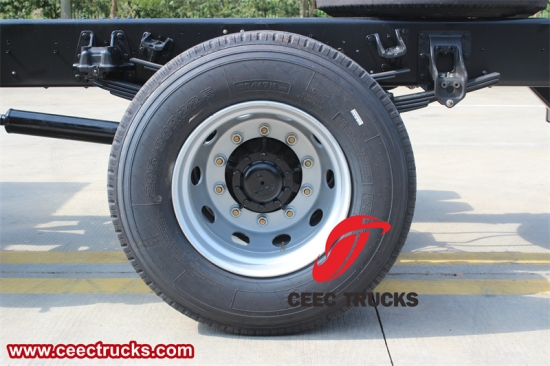 Транспортно возило за логистику: Као основа логистичких транспортних возила, ова шасија може да носи товарне одељке или контејнере различитих спецификација за транспорт терета на велике или кратке удаљености. Његов јак капацитет носивости и стабилне перформансе осигуравају ефикасност и сигурност логистичког транспорта.