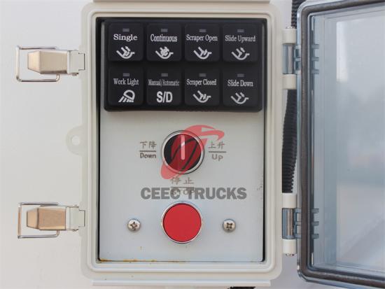 Исузу ФВР ГИГА камион за сабијање отпада не само да има добре перформансе у снази, преносу, запремини канте за смеће, ефикасности компресије, итд., већ његов напредни систем управљања чини овај модел јединственим у области градског одлагања смећа. У наставку ће се детаљно представити кључне контролне компоненте овог камиона за смеће, као што су електрична контролна кутија (у кабини), џојстици за хидрауличну контролу (на страни погона), електрична контролна кутија (у вратима пртљажника) и ручна контролна кутија (у пртљажнику).