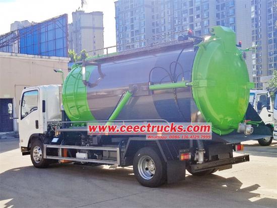 Исузу НПР вакуумски усисни камион са доњом плочом производа ИСУЗУ, велике снаге, опремљен уљном пумпом од 190хп. Хотел је опремљен грејаним и хлађеним клима уређајем који може да прими 3 особе. 4Кс2 систем вожње за Исузу НКР вакум усисни камион, опремљен са 6-брзинским ручним мењачем, максимална могућа брзина 90км/х. Исузу ЕЛФ вакум усисни камион са квалитетом челичног материјала, капацитет 8000-10000 литара, опремљен са 7 усисних цеви, високоефикасна вакум пумпа, брзи завршетак усисног рада.