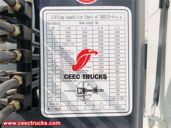 Овај модификовани камион кран је компетентан да подигне 5 тона материјала. Веома је ефикасан када је у питању померање тешке опреме, машина, возила и других предмета. Широко се користи на градилиштима, производним секторима, млиновима, фабрикама и за транспорт тешких алата. О свим посебним захтевима у вези са спецификацијама и конфигурацијама се може разговарати и у складу са тим се могу испунити.
