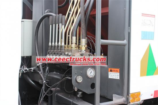 ——Хидраулични систем:Састоји се од резервоара за гориво, пумпе за уље, вишесмерног вентила, хидрауличног цилиндра, цевовода итд. Хидраулички притисак је обично подешен на 16Мпа, а снага се добија од мотора преко прикључка за погон за утовар и истовар, компресију, подизање и друге радње.