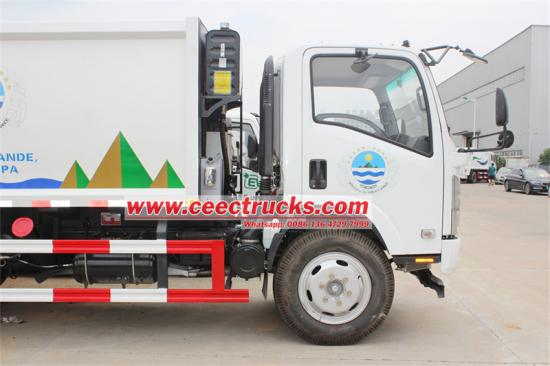 Isuzu rear loader truck with a flip mechanismИСУЗУНПР 10ЦБМКомпактор за смеће је високоефикасна опрема посебно дизајнирана за управљање градским отпадом. Користи напредну технологију компактора за значајно смањење количине смећаповећањем ефикасности транспорта, смањењем броја транспортних путовања и смањењем оперативних трошкова. Изграђен на шасији Исузу НПР, тхе задњи утоваривач за смеће опремљен је са 190ХП Еуро 6 мотор и шестостепени мењач, који нуде робусне перформансе снаге и стабилне могућности вожње. Својим компактним дизајном и једноставним руковањем, ИСУЗУ10ЦБМ хидраулични компактор смећа погодан је за сакупљање и транспорт смећа у различитим срединама, укључујући градове и насеља.