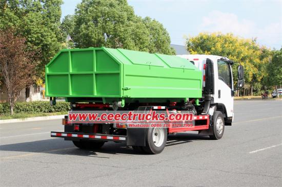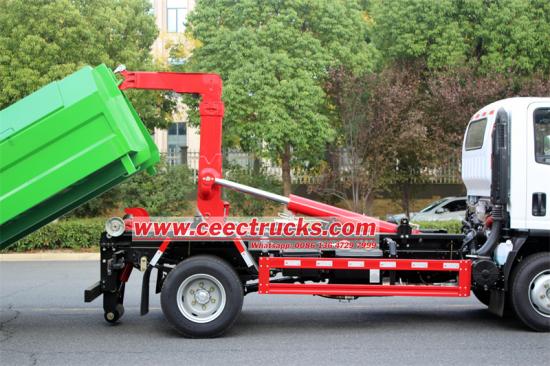 6 tons Hook lift garbage truckОво је Исузу НПР камион за утоваривање смећа високих перформанси, који наглашава прецизан инжењерски дизајн модерних возила за градску санитарну опрему. Опремљен четвороцилиндричним дизел мотором ИСУЗУ 4ХК1-ТЦГ61 са номиналном снагом од 190 коњских снага, не само да је моћан већ је и еколошки прихватљив. Са међуосовинским растојањем од 3360 мм, укупном масом од 10 550 кг, носивошћу од 6 тона и максималном брзином од 105 км/х, лако је возити се улицама и сокацима. Његов хидраулични систем за подизање има максималан капацитет дизања од 6 тона, време пражњења од 40-50 секунди, максимални угао избацивања од 45° и притисак хидрауличког система од 16Мпа, што може задовољити основне потребе урбаних санитарних предузећа.