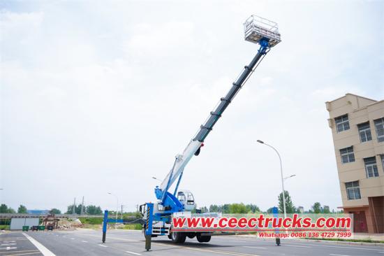 Seven-section hexadecagonal synchronous telescopic armЗаснован на поузданој ФТР ГИГА 4Кс шасији,Исузу камионом монтирана 45 м радна платформаје моћно и свестрано решење за рад из ваздуха. Платформа је опремљена шестоделном шестоугаоном, 45м синхронизованом телескопском граном која обезбеђује одличан домет и стабилност, и опремљена је ваздушном корпом за рад са посадом од 1,6м. Нуди три режима рада - кутија са посадом, земаљска контрола и бежични даљински управљач - како би се побољшала удобност корисника. Идеалан је за разне грађевинске, одржавање и комуналне послове.