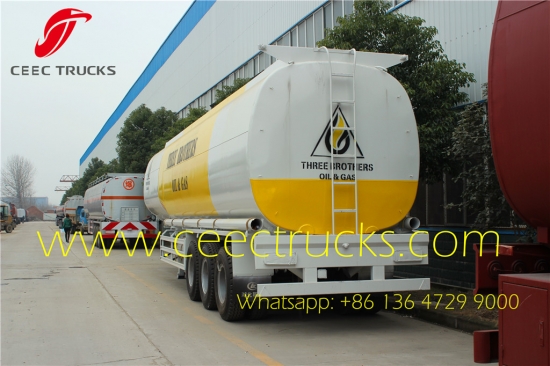Полуприколица цистерна за гориво најбољег квалитета 40 ЦБМ, вентили евро стандарда, осовина ФУВА / БПВ за опционо, ваздушне кочнице безбедна вожња, стајни трап ЈОСТ, 50# правац, резервоар од угљеничног челика са капацитетом од 40000 литара за продају у Африци