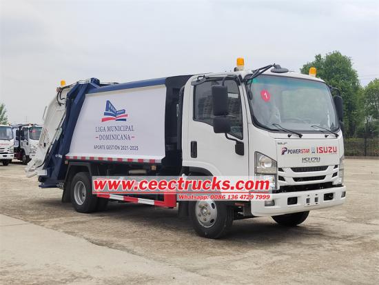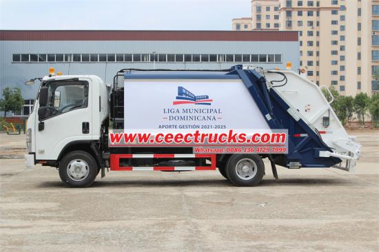 Задњи утоваривач Исузу 10 цбм је модификован на основу кабине Исузу ЕЛФ 700П, са УСБ, А/Ц, серво управљачем, електричним подизачима, међуосовинским растојањем 4175мм, ГВВ 11000кг, возило је опремљено мотором 4ХК1-ТЦГ61 190ХП, Еуроан6 диесел диесел, Еуроан6 диесел. Горњи део је канта за смеће од 10 кубних метара, дизајн лука, дебљине страница 4 мм и доње 5 мм, третман против рђе, време циклуса пуњења 25-30 секунди, притисак хидрауличног система 16 МПа, подршка за аутоматску и ручну контролу, прилагођавање канти за смеће од 240Л, ефикасан и еколошки прихватљив.
