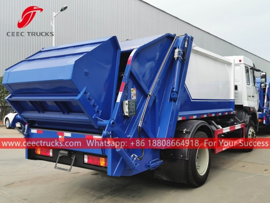 СИНОТРУК Реар Лоад Камион за смеће (такође се зове камион за набијање смећа, задњи утоваривач СИНОТРУК, потпуно нови камион за сабијање отпада, камион за утовар смећа, камион за сакупљање смећа,компресије произвођач возила за смеће) је дизајниран за свакодневни транспорт смећа у животним подручјима као што су све врсте градова, велике станице, луке и пристаништа, аеродроми и густо насељена подручја као што су индустријска и минерална предузећа и војне јединице.