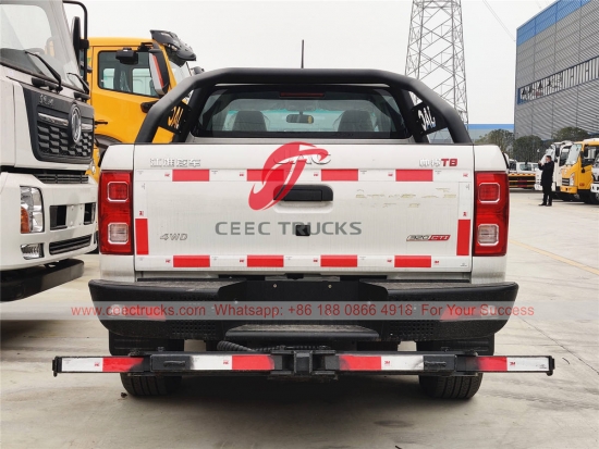 Пикап камион, прилагођен модел пикапа, који може бити ИСУЗУ пицкуп, ФОРД пицкуп, ТОИОТА пицкуп, итд. Радни систем задњег хидрауличног цилиндра за спасавање аутомобила, фарбање и лого зависе од захтева.