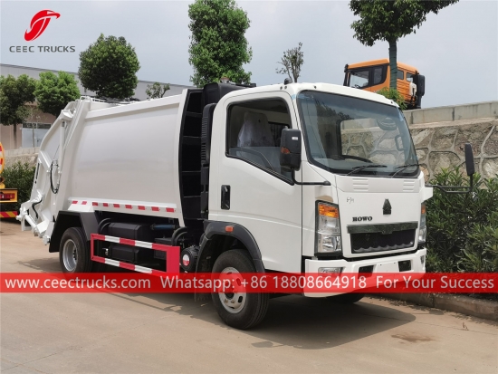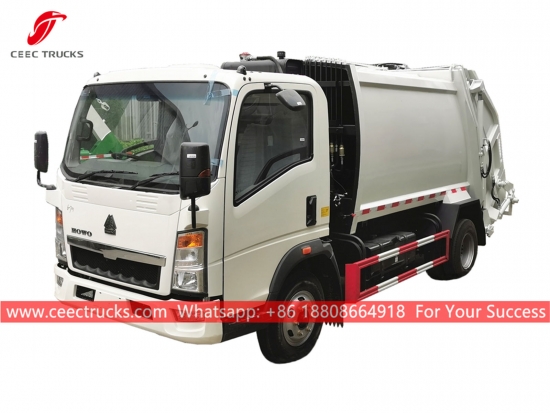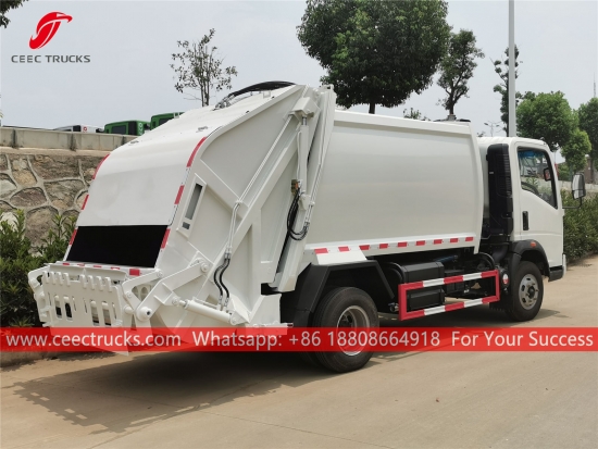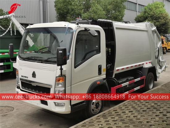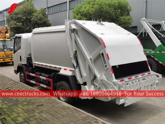 ХОВО РХД камион са компресијом за смеће, шасија камиона који користи дизел мотор ЦУММИНС 130 КС, ручни мењач са 6 брзина. ПЛЦ контролна кутија за лак рад. Све слике и логотипи на основу захтева клијената.
