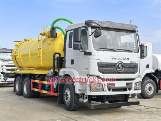 SHACMAN vacuum tanker truck is produced based on H3000 series 6x4 heavy duty truck chassis, equipped with 18000Liters sewage tanker body kit, round shape design with thickness 6mm, matched working with Italy MORO brand water cycle vacuum pump PM110W, available for pump in and pump out process, efficiently suction distance can be over 100meters and suction dept over 8m. And the Shacman cesspit emptier are popupar in Africa market.