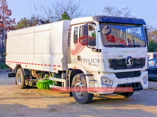 Схацман 9000Л вакумски камион за чишћење, Схацман 4к2 шасија, ручни мењач са 8 брзина, дизел мотор од 290 КС, канта за прашину од нерђајућег челика и тело за чисту воду, систем са 2 четке са системом за прање, са електричном контролом кабине за практичан рад. Све слике и логотипи зависе од захтева.
