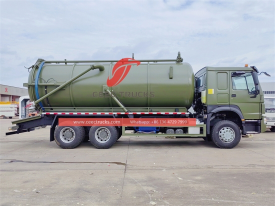 ХОВО 6А—4 Вакуум цистерна (такође се називају вакумски канализациони камион, канализациони сисаљ, ХОВО камион за отпадну воду, испражник сливника, камион за септичке јаме, септички испразнивац) користи се за сакупљање, транспорт и испуштање течности као што су прљава вода, муљ, септичка, сирова нафта и чврсте ствари као што су ситно камење, цигле. Погодан је за чишћење канализације, септичке јаме, септичке јаме, сливника, итд. Широко се користи у области животне средине и санитације.