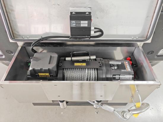 Заварена конструкција од легуре алуминијума. Кровна ограда са ЛЕД светлом. Са мердевинама од легуре алуминијума у задњем делу. |