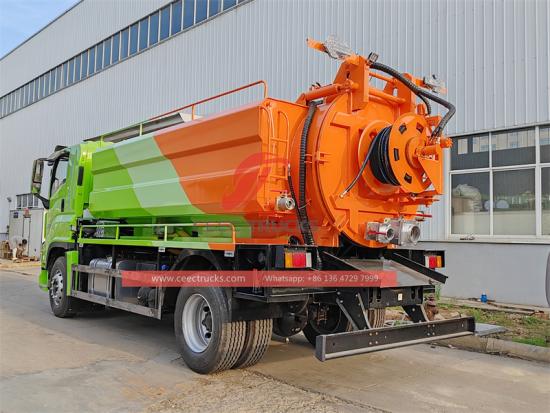 Isuzu GIGA chassis,large tank capacityЧет Цистерна са комбинованом млазном пумпом од 10000 литара је базиран на ISUZU-у Шасија FVR 240HP и усваја 4×2 погон право - конфигурација ручног волана. То ' с специјално дизајниран за ефикасне и поуздане задатке пречишћавања отпадних вода. Тежина празног возила је 9 , 65 0 кг, што обезбеђује велику носивост и стабилност. Кабина користи хидраулични серво управљач како би возачу пружила удобно искуство вожње и може да прими 1 возача и 2 путника истовремено. Опремљено ISUZU-ом 6HK1-TCG61 мотор, 6 - линијски цилиндар, 4 -директно убризгавање, водено хлађење и технологија међупуњавања, пружајући снажну снагу 240 КС Исузу ФВР Вактор млазни камион је упарен са ИСУЗУ-ом Брзо 8 -брзински мануелни мењач за обезбеђивање велике снаге и ефикасне потрошње горива. Опремљен је телом за чишћење и усисавање, укључујући задња врата (задњи резервоар), плочу за пражњење/истовравање, плочу за сабијање, клизну плочу и посебан млаз за испирање и одблокирање под високим притиском. Постиже ефикасан и практичан третман муља. Његов 6 капацитет канализације од .000 литара и 4 , 0 Резервоар за воду за чишћење под високим притиском од 00 литара је довољан да задовољи већину оперативних потреба.
